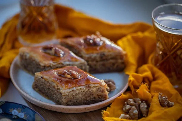Prepustite se slatkim, bogatim slojevima baklave – desert inspirisan ljepotom Bosne i okusima Balkana, savršeno uparen sa utješnom šoljicom čaja.